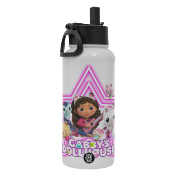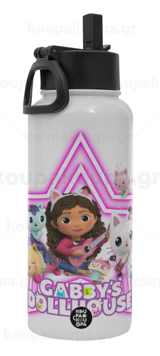 Gabby Dollhouse, Metal mug thermo White with Straw and Spout Lid (Stainless steel), double wall, 950ml