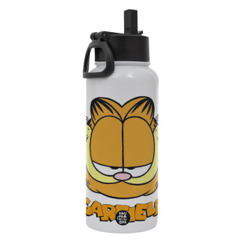 Garfield, Metal mug thermo White with Straw and Spout Lid (Stainless steel), double wall, 950ml