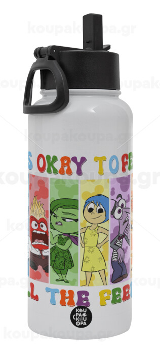 Inside Out It's Okay To Feel All The Feels , Metal mug thermo White with Straw and Spout Lid (Stainless steel), double wall, 950ml