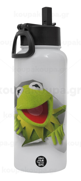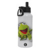 Kermit the frog, Metal mug thermo White with Straw and Spout Lid (Stainless steel), double wall, 950ml