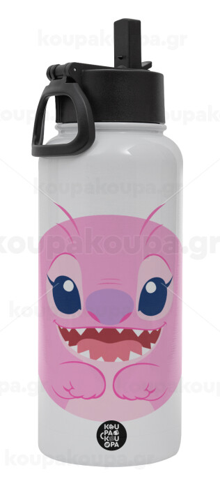 Lilo & Stitch Angel pink, Metal mug thermo White with Straw and Spout Lid (Stainless steel), double wall, 950ml