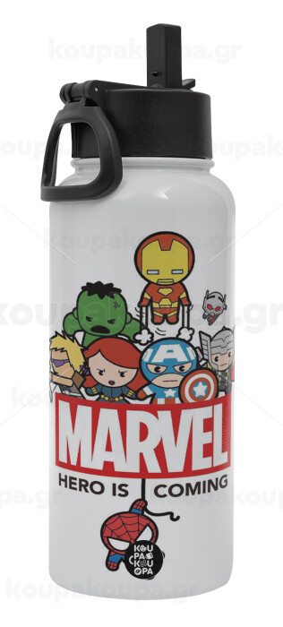 MARVEL, Metal mug thermo White with Straw and Spout Lid (Stainless steel), double wall, 950ml