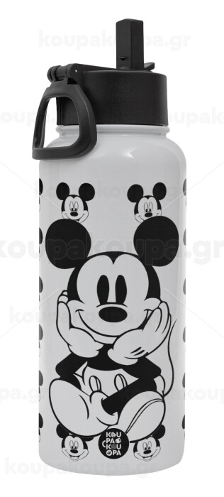 Mickey, Metal mug thermo White with Straw and Spout Lid (Stainless steel), double wall, 950ml