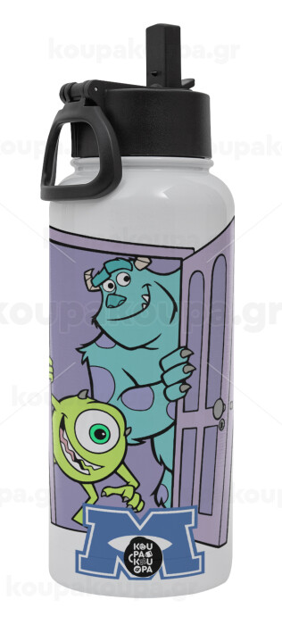 Monster inc, Metal mug thermo White with Straw and Spout Lid (Stainless steel), double wall, 950ml