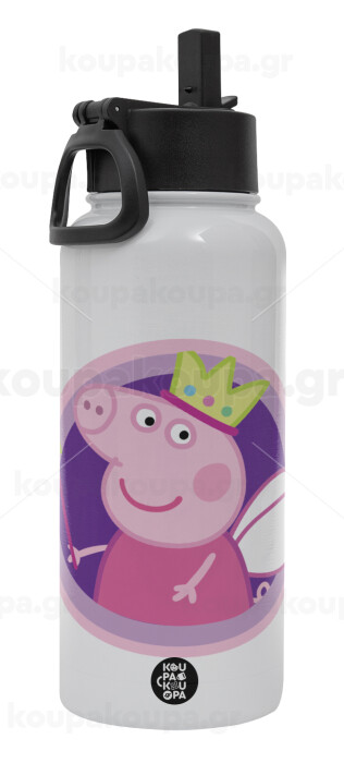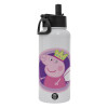Peppa pig Queen, Metal mug thermo White with Straw and Spout Lid (Stainless steel), double wall, 950ml