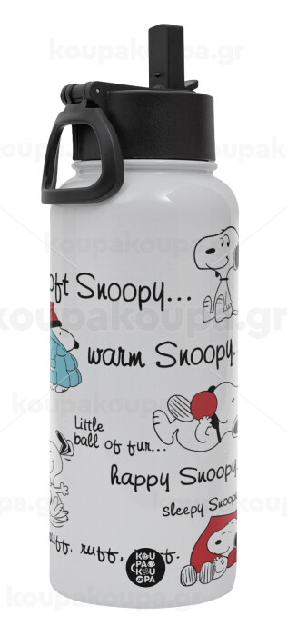 Snoopy manual, Metal mug thermo White with Straw and Spout Lid (Stainless steel), double wall, 950ml