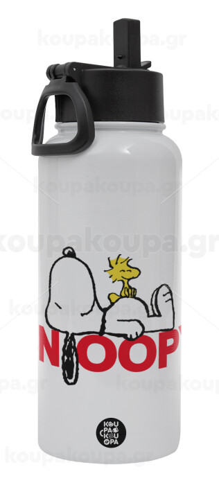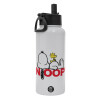Snoopy sleep, Metal mug thermo White with Straw and Spout Lid (Stainless steel), double wall, 950ml