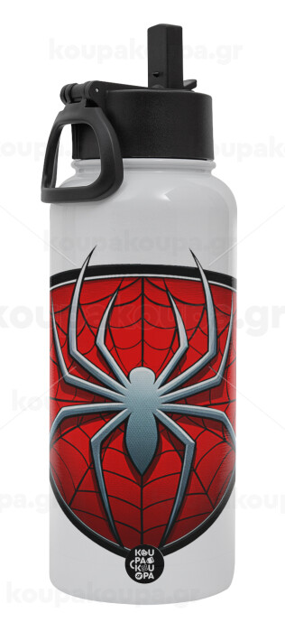 Spider-man, Metal mug thermo White with Straw and Spout Lid (Stainless steel), double wall, 950ml