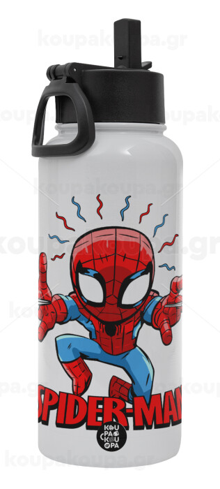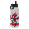 Spiderman flying, Metal mug thermo White with Straw and Spout Lid (Stainless steel), double wall, 950ml