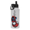 Spiderman upside down, Metal mug thermo White with Straw and Spout Lid (Stainless steel), double wall, 950ml