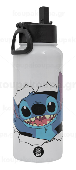 Stitch hello!!!, Metal mug thermo White with Straw and Spout Lid (Stainless steel), double wall, 950ml