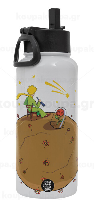 The Little prince planet, Metal mug thermo White with Straw and Spout Lid (Stainless steel), double wall, 950ml