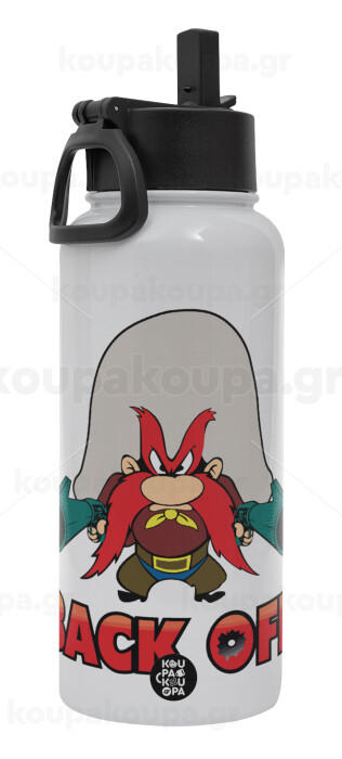 Yosemite Sam Back OFF, Metal mug thermo White with Straw and Spout Lid (Stainless steel), double wall, 950ml