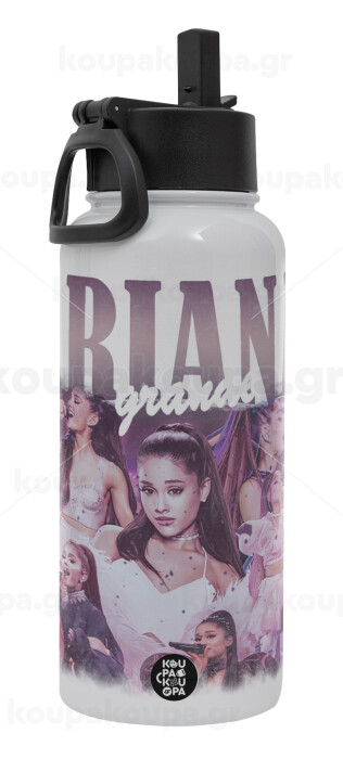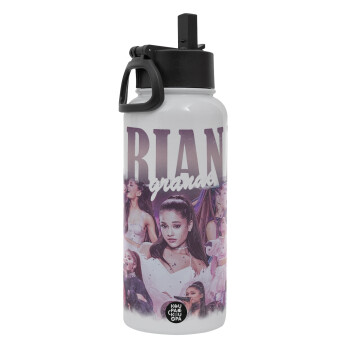 Ariana Grande, Metal mug thermo White with Straw and Spout Lid (Stainless steel), double wall, 950ml