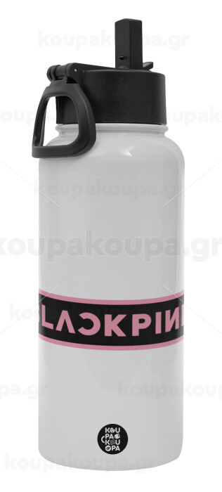 BLACKPINK, Metal mug thermo White with Straw and Spout Lid (Stainless steel), double wall, 950ml