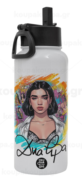 Dua lipa, Metal mug thermo White with Straw and Spout Lid (Stainless steel), double wall, 950ml