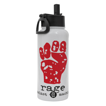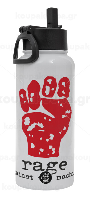 Rage against the machine, Metal mug thermo White with Straw and Spout Lid (Stainless steel), double wall, 950ml