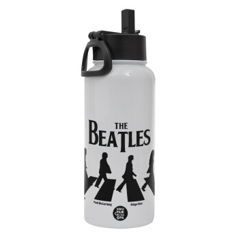 The Beatles, Abbey Road, Metal mug thermo White with Straw and Spout Lid (Stainless steel), double wall, 950ml