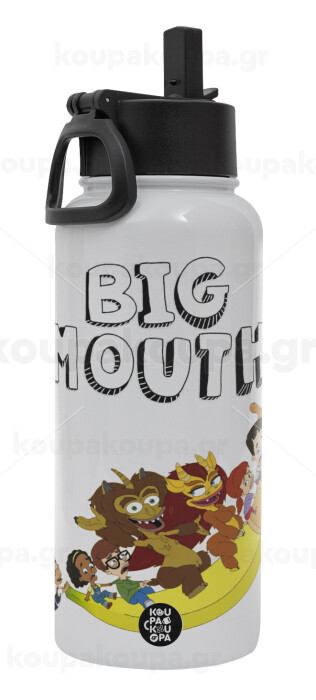 Big mouth, Metal mug thermo White with Straw and Spout Lid (Stainless steel), double wall, 950ml