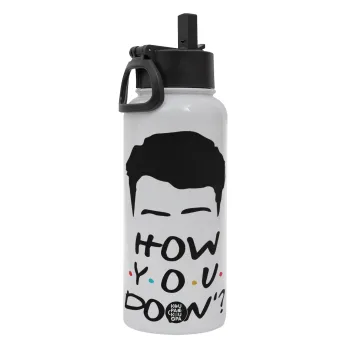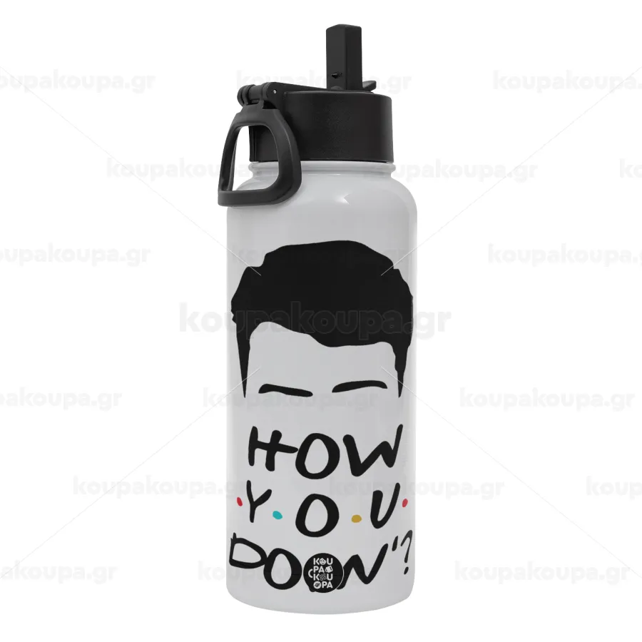 Friends how you doin?, Metal mug thermo White with Straw and Spout Lid (Stainless steel), double wall, 950ml