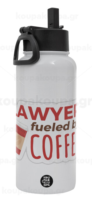 Lawyer fueled by coffee, Metal mug thermo White with Straw and Spout Lid (Stainless steel), double wall, 950ml
