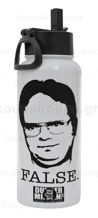 The office Dwight, Metal mug thermo White with Straw and Spout Lid (Stainless steel), double wall, 950ml