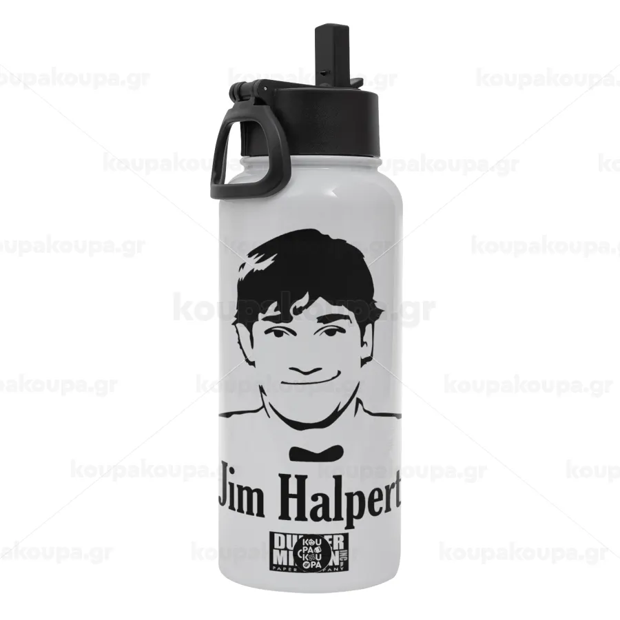 The office Jim Halpert, Metal mug thermo White with Straw and Spout Lid (Stainless steel), double wall, 950ml