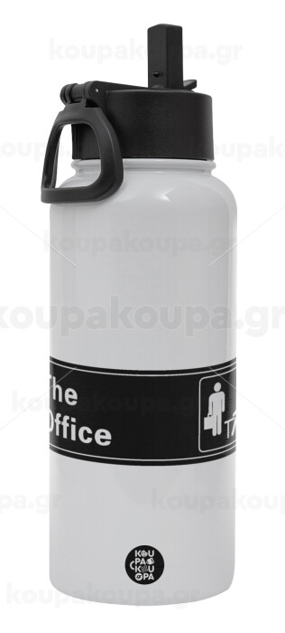 The office, Metal mug thermo White with Straw and Spout Lid (Stainless steel), double wall, 950ml