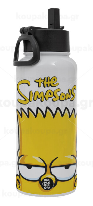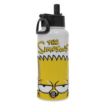 The Simpsons Bart, Metal mug thermo White with Straw and Spout Lid (Stainless steel), double wall, 950ml