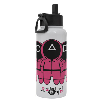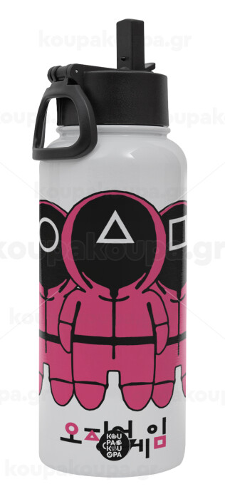 The squid game, Metal mug thermo White with Straw and Spout Lid (Stainless steel), double wall, 950ml