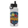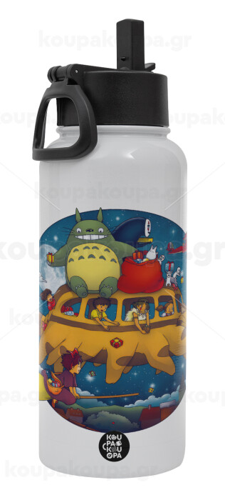 Totoro Catbus, Metal mug thermo White with Straw and Spout Lid (Stainless steel), double wall, 950ml
