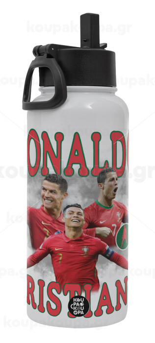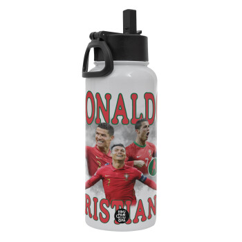 Cristiano Ronaldo, Metal mug thermo White with Straw and Spout Lid (Stainless steel), double wall, 950ml