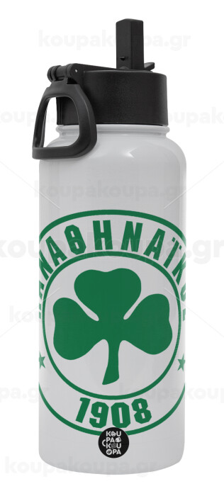 ΠΑΟ Παναθηναϊκός, Metal mug thermo White with Straw and Spout Lid (Stainless steel), double wall, 950ml