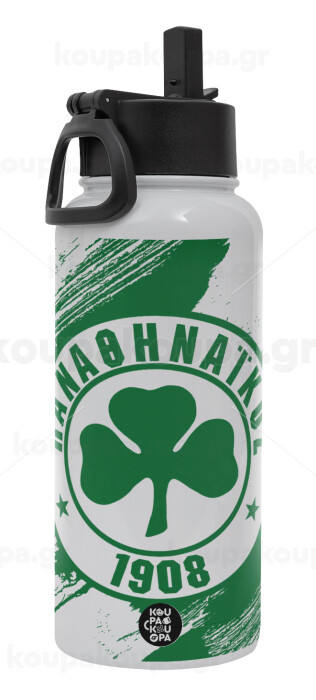 Π.Α.Ο., Metal mug thermo White with Straw and Spout Lid (Stainless steel), double wall, 950ml