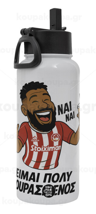 Ροντινέι, "ΠΟΛΥ ΚΟΥΡΑΣΜΕΝΟΣ", Metal mug thermo White with Straw and Spout Lid (Stainless steel), double wall, 950ml