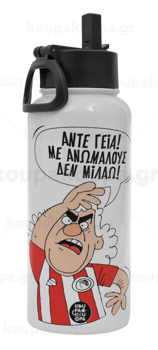 Τάκης, Άντε γεια, με ανώμαλους δεν μιλάω!, Metal mug thermo White with Straw and Spout Lid (Stainless steel), double wall, 950ml