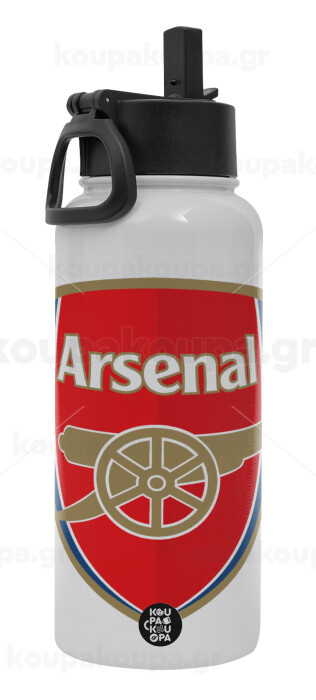 Arsenal, Metal mug thermo White with Straw and Spout Lid (Stainless steel), double wall, 950ml
