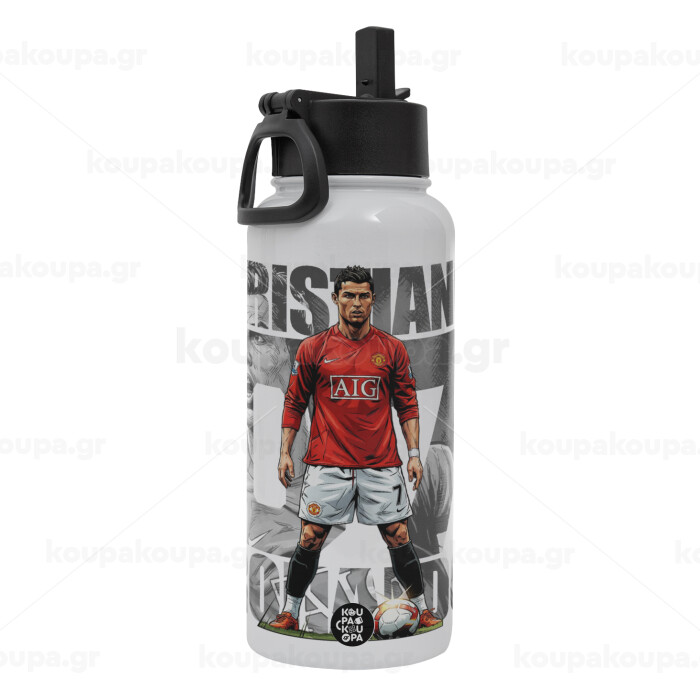 Cristiano Ronaldo (Κριστιάνο Ρονάλντο), Metal mug thermo White with Straw and Spout Lid (Stainless steel), double wall, 950ml