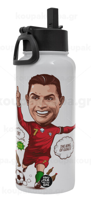 Cristiano Ronaldo, Metal mug thermo White with Straw and Spout Lid (Stainless steel), double wall, 950ml