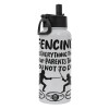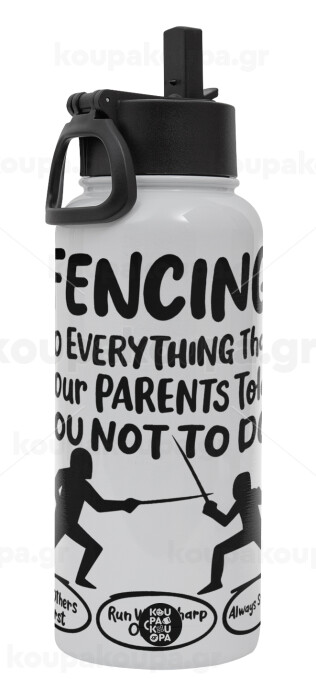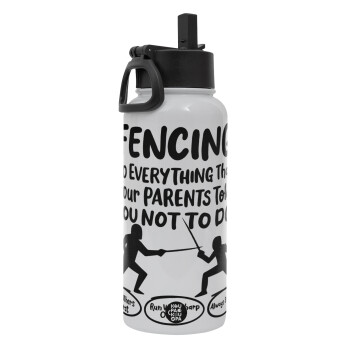 Fencing, do everything that your parents told you not to do., Metal mug thermo White with Straw and Spout Lid (Stainless steel), double wall, 950ml