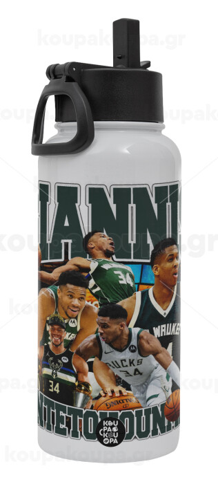 Giannis Antetokounmpo, Metal mug thermo White with Straw and Spout Lid (Stainless steel), double wall, 950ml