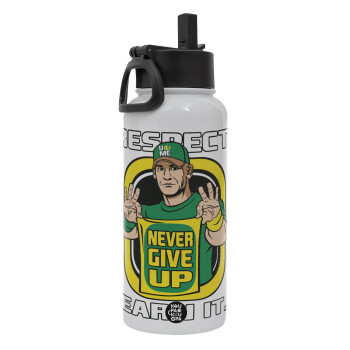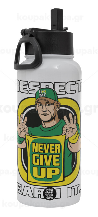 John Cena, Metal mug thermo White with Straw and Spout Lid (Stainless steel), double wall, 950ml