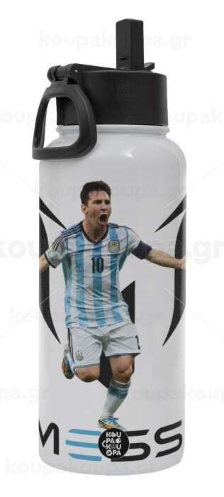 Lionel Messi, Metal mug thermo White with Straw and Spout Lid (Stainless steel), double wall, 950ml