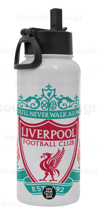 Liverpool, Metal mug thermo White with Straw and Spout Lid (Stainless steel), double wall, 950ml