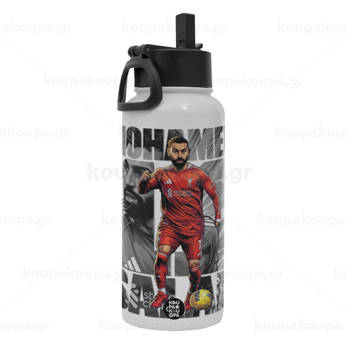 Mohamed Salah (Μοχάμεντ Σαλάχ), Metal mug thermo White with Straw and Spout Lid (Stainless steel), double wall, 950ml