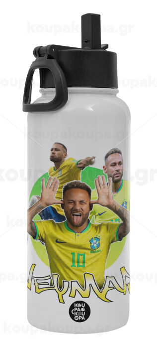 Neymar JR, Metal mug thermo White with Straw and Spout Lid (Stainless steel), double wall, 950ml