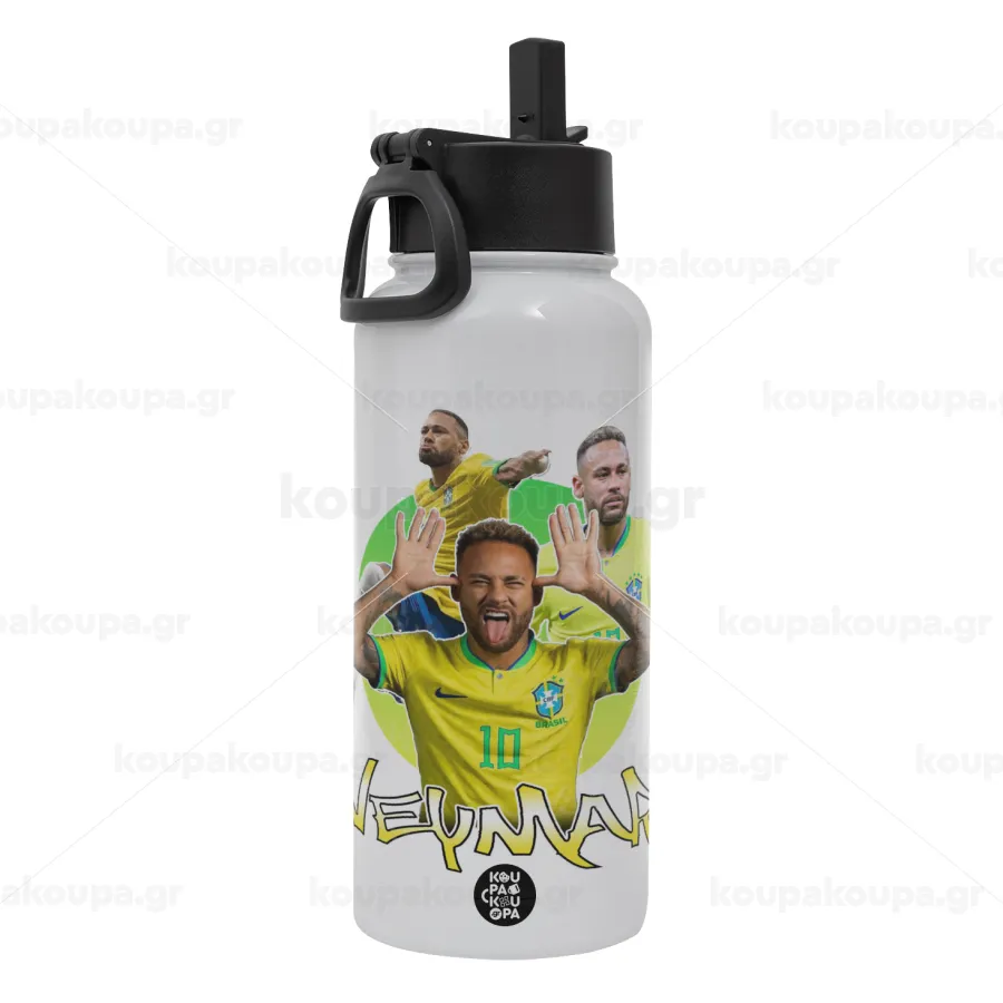 Neymar JR, Metal mug thermo White with Straw and Spout Lid (Stainless steel), double wall, 950ml