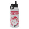 Olympiacos B.C., Metal mug thermo White with Straw and Spout Lid (Stainless steel), double wall, 950ml
