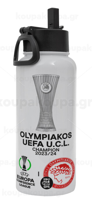 Olympiacos UEFA Europa Conference League Champion 2023/24, Metal mug thermo White with Straw and Spout Lid (Stainless steel), double wall, 950ml