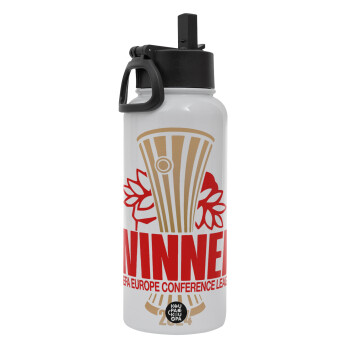 Europa Conference League WINNER, Metal mug thermo White with Straw and Spout Lid (Stainless steel), double wall, 950ml